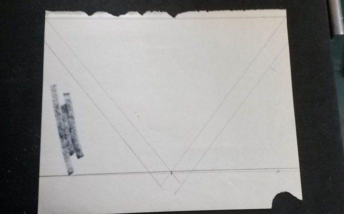 Берётся несколько страниц из старой книги. На листе бумаги рисуется шаблон, приложив раскрытую книгу под произвольным углом. Края книги обводятся с напуском 1-1,5 см со всех сторон. Этот шаблон используется, чтоб вырезать 2 кусочка кожи.