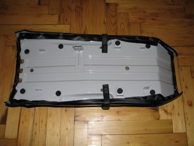 Собрал сиденье. Чехол не оригинал но качества не плохого. Главное отличие от родного, считаю штамп тиснения сделан «вперёд ногами», видно по кубикам и по месту прохождения ремешка. Ух и намучился когда натягивал… В целом, результатом доволен)))