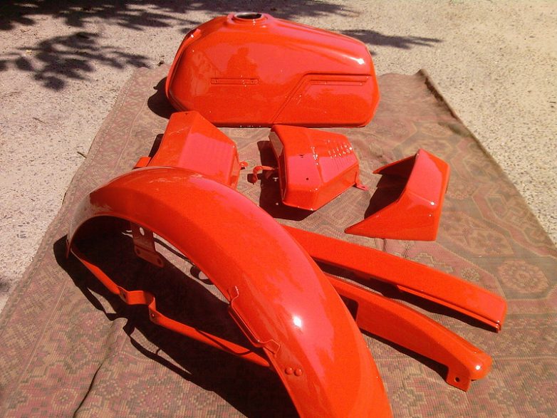 Вот сравнение цвета с оригинальным не перекрашенным крылом коляски. Но надо учесть что на коляске краске уже более 20 лет, немного помутнела. Практически не отличается