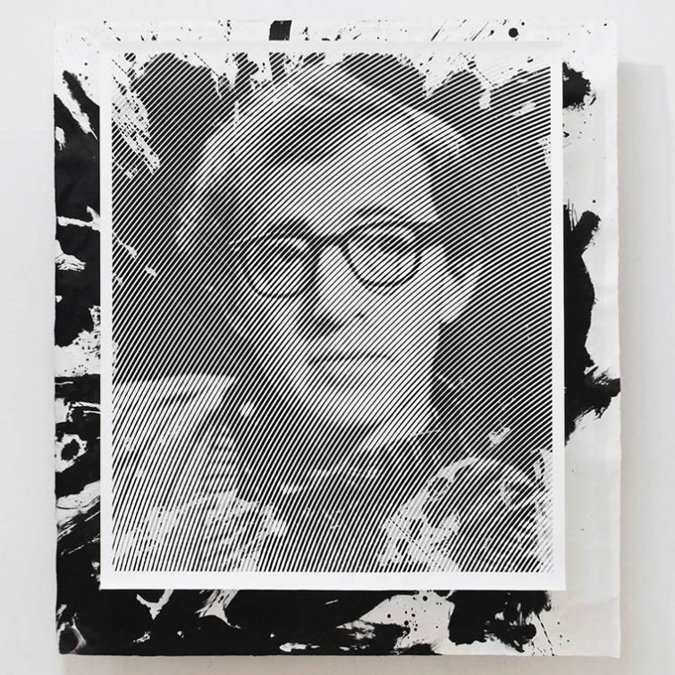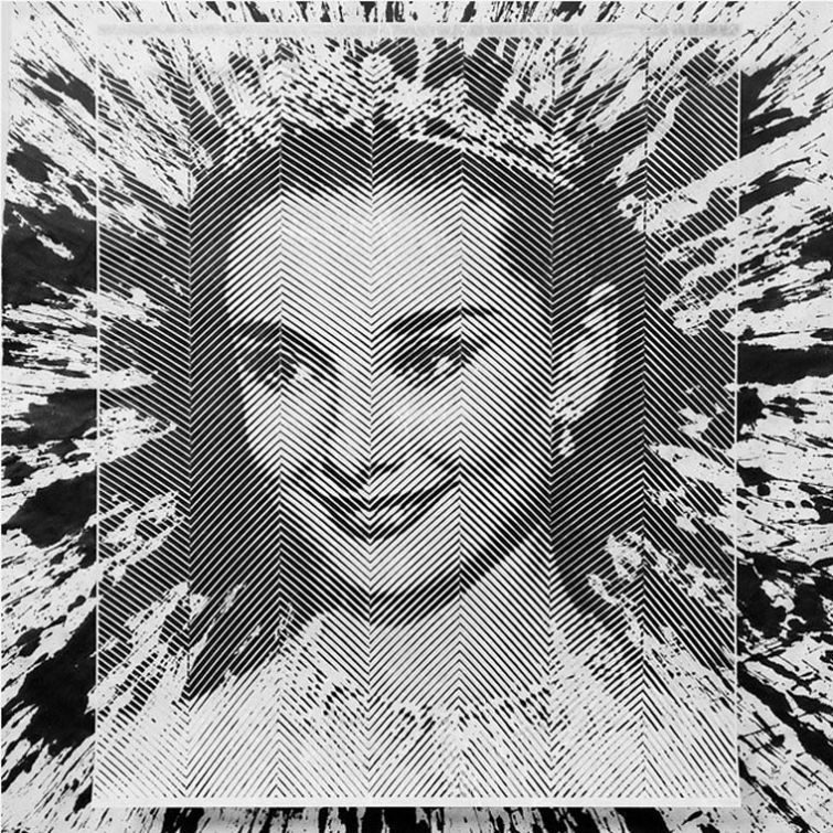 Процесс вырезания портрета Фриды Кало