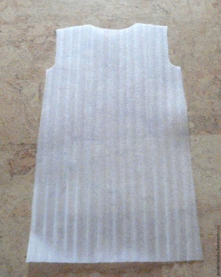 Выкладываем вискозу по полочке платья. Помним, что здесь у нас другая линия проймы и ворота.
