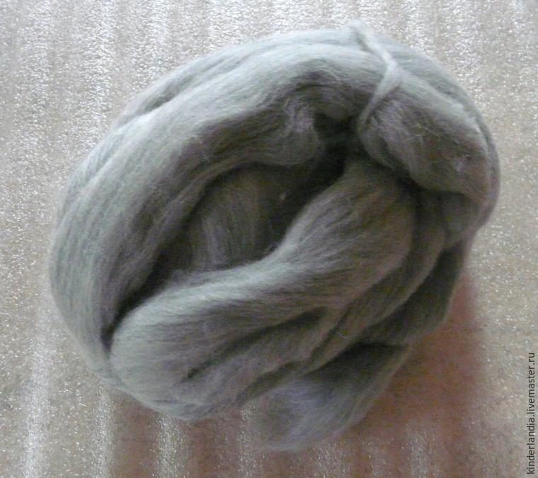 — шерсть меринос неокрашенная серая, тонина 21 мкрн, 70- 80 граммов;