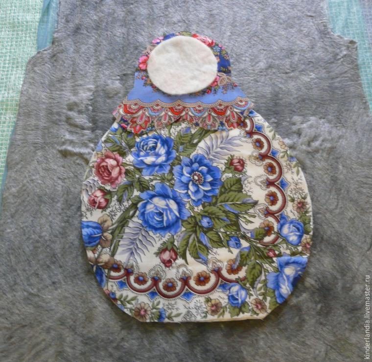 Чтобы цветные узоры не просвечивали на личике, я приложила слой белой вискозы под префельт.