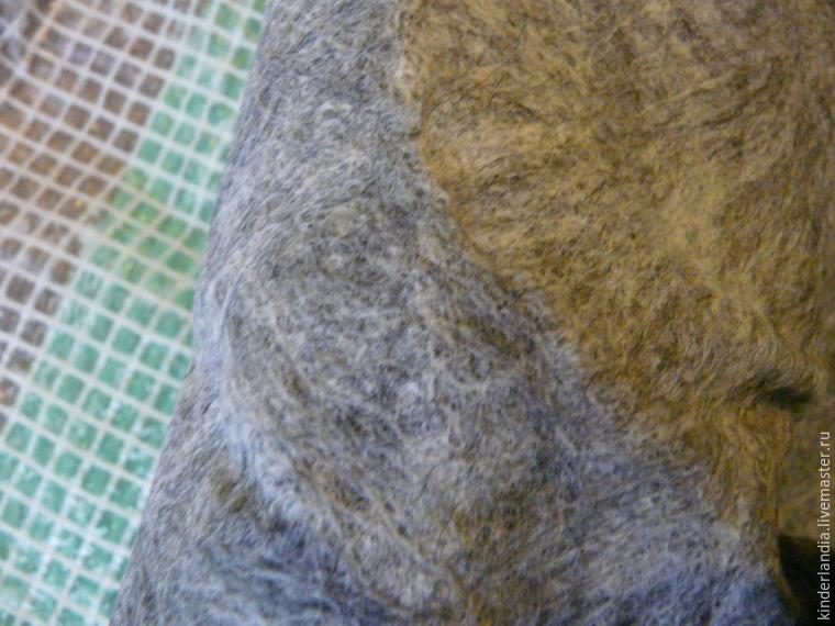 Продолжаем валять в плоскости, для получения максимально ровного и красивого войлока. Трем войлок о войлок. При трении нажим должен быть не сильнее, чем, когда мы пишем ручкой.