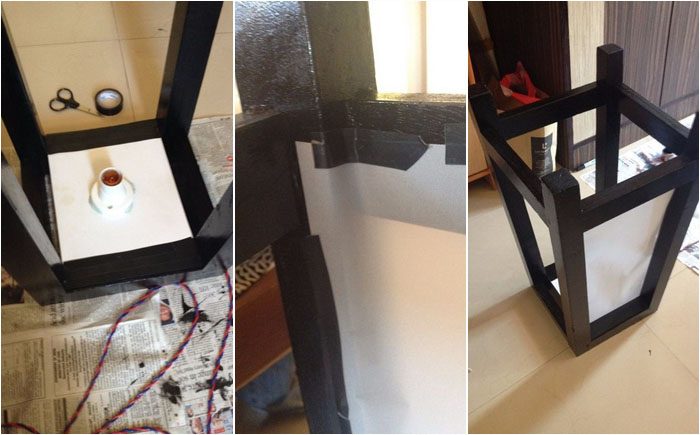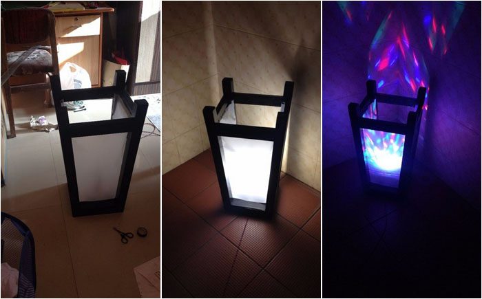 Выключите свет и включите уникальный ночник. Если взять разноцветную лампочку, то эффект будет еще неожиданней и удивительней. Не следует брать слишком мощную лампочку, поскольку в ночнике яркий свет абсолютно ни к чему. Можно также поэкспериментировать с расцветкой холста или рисунками на нем.