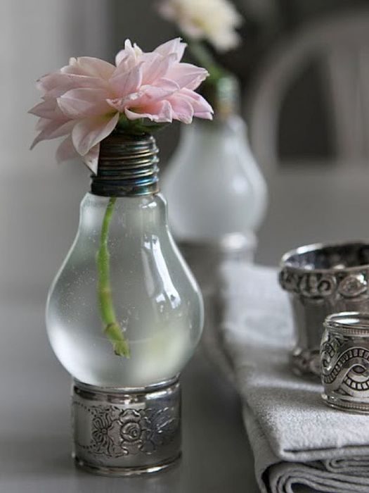 На первый взгляд, перегоревшая лампочка накаливания совершенно бесполезная вещь и место её в мусорном ведре. Но подключив смекалку и из этих ненужных предметов можно сделать летнюю вазочку или интересный декор для детской.