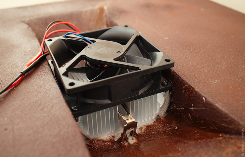 Швы промазываем герметиком, оба вентилятора переворачиваем на выдув. Из потенциальных доработок — возможно стоит снизить скорость вентилятора на холодной стороне (сейчас оба вентилятора работают с максимальной скоростью).