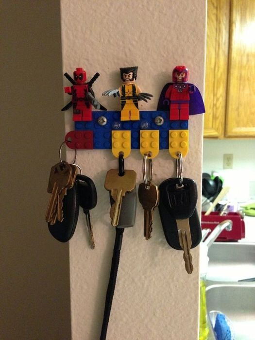 Сегодня многие откровенно фанатеют по конструктору Lego. Кто-то строит из его мини-города, некоторые сооружают автомобили реального размера. Использовать детали Лего можно и для изготовления стильной ключницы. С таким аксессуаром ключи точно не потеряются, а интерьер станет более креативным.