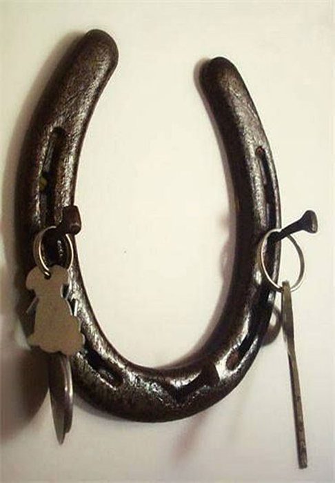 Нотки креатива в интерьер внесёт ключница, изготовленная из старых гнутых ключей, вилок и ложек. Чтобы привлечь в дом удачу некоторые делают органайзеры для ключей из обычных подков. Как показывает практика, сделать ключницу можно из самых разнообразных материалов, главное, чтобы она гармонично вписалась в интерьер и стала его достойным украшением.