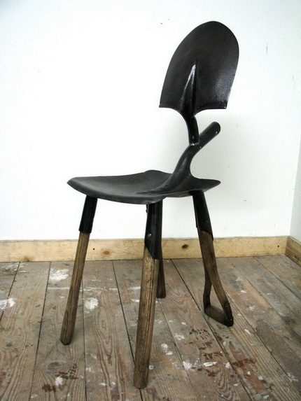 А как насчёт садового стула, собранного из сломанных… лопат? Одна в качестве спинки, другая для сидения, и черенки вместо ножек. Идеальное решение для тех, кто не любит выбрасывать отслужившие своё вещи. Результат удовлетворит и практиков, и эстетов. Садовой мебелью, созданной по этому шаблону, можно хвастаться с полным на то правом.