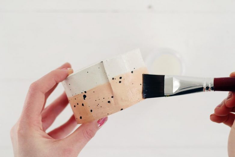Примечание: не обязательно, чтобы краска легла ровным слоем. Легкая неаккуратность позволяет добиться неплохого результата — сразу становится ясно, что горшок изготовлен своими руками.