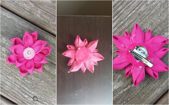 Сверните каждый из них в виде лепестка и зафиксируйте клеем из клеевого пистолета. Таким образом сделайте 12 лепестков. Приклейте их к фетровой основе.