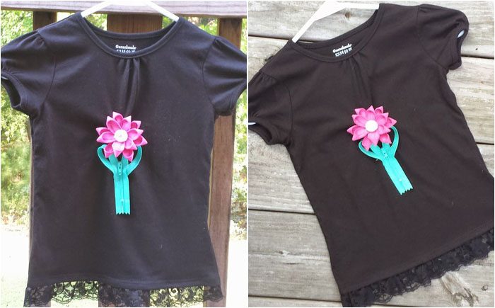 И совсем не обязательно для этого тратить целое состояние, можно украсить самую обычную футболку или платье своими руками. Результат превзойдет все ожидания, так как это будет оригинальная вещь, существующая в единственном экземпляре. Предлагаем порадовать дочь оригинальной футболкой со съемной брошью из простой и доступной швейной фурнитуры.