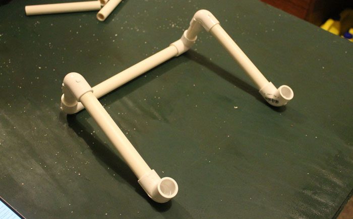 Сложите два 18см отрезка ПВХ трубки внутрь, пока они не создадут прямоугольную конструкцию.