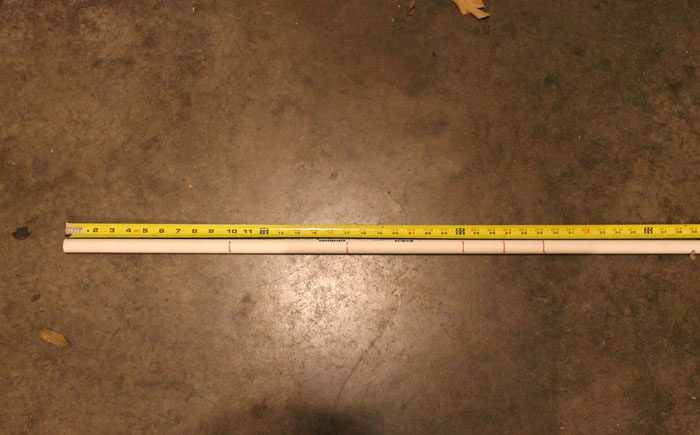 2. Используя маркер, сделайте отметки на трубке на расстоянии 25см, 43см, 61см, 67,5см, 74см.