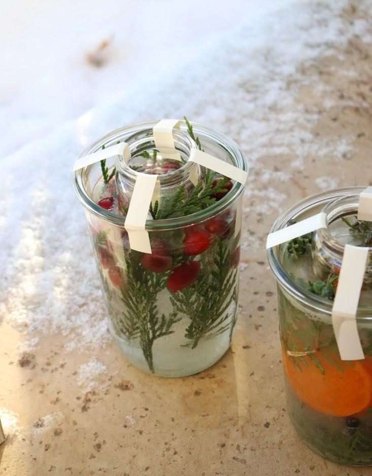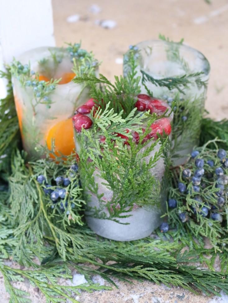 Отлично будут смотреться и ледяные подсвечники с ломтиками апельсинов или мандаринов.