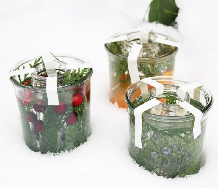 различные предметы для декора (ломтики апельсина или мандарина, веточки туи или самшита, еловая хвоя, ягоды можжевельника, клюквы, и т.д.)