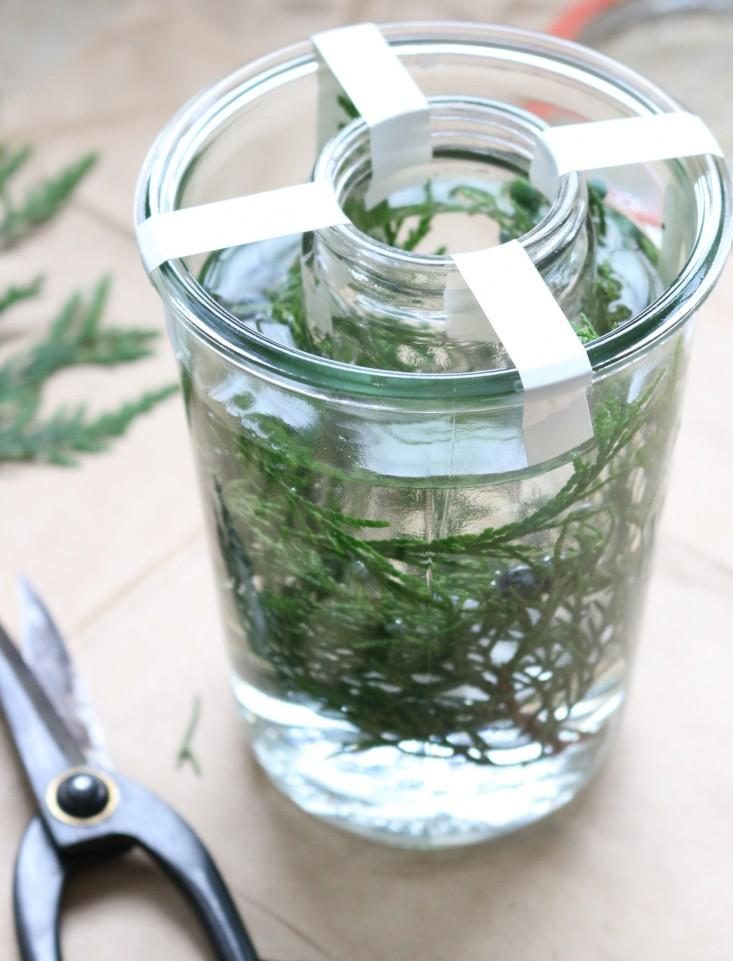 Примечание: если расстояние между контейнерами небольшое, декор можно уложить на дно большего контейнера заранее.