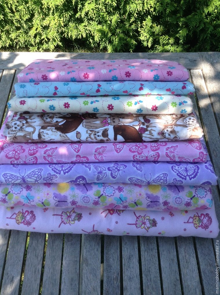 Для этого проекта я достала из закромов родины вот такую фланель. Это американская фланель с двусторонним начесом. Поскольку одеялки у нас двусторонние, то у такой фланени будет повышенная теплоизоляция и максимальное сцепление поверхностей двух полотен, соответвтенно, не будет скольжения верха и низа одеялка отностительно друг друга. Конечно, все знают, что фланель прекрасно дышит и очень приятна к телу. Как раз то, что подходит для нежной кожицы малыша или малышки.