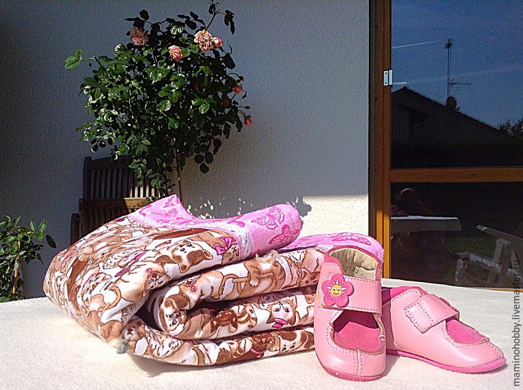 Всё. Двумя-тремя швами по периметру мы сшили милое и практичное одеялко. Теперь можно отснять на память и дарить новорожденным: