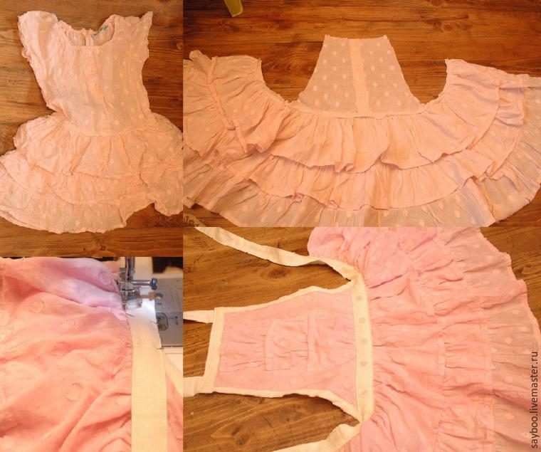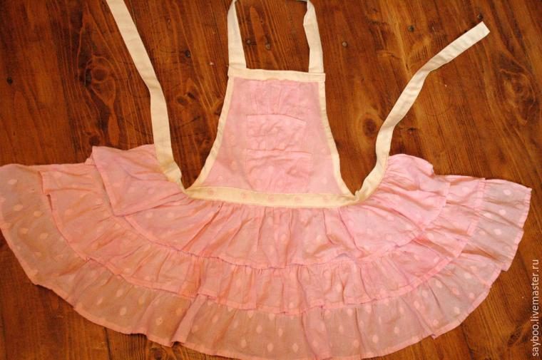 Фартучек для принцессы, сделан из ее прошлогоднего платья, на нем оказались и пятнышки к сожалению, но это было легко исправить задекорировав кармашками. Для передника потребовался еще небольшой кусок хлопковой молочной ткани, дополняющий композицию и скрепляющий тоненькую основу платья