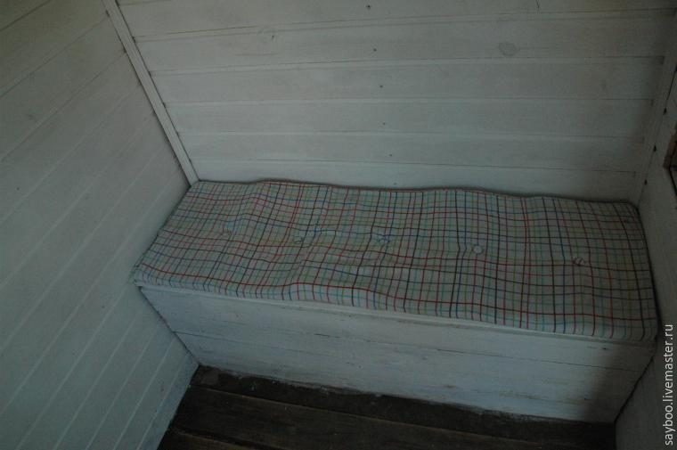 Сиденье сделано из икеевской детской простыни, и разных кусков поролона найденых в шкафу (на самом деле, кто-то спрятал и замаскировал его в подушку, хорошо что я нашла, поэтому пуговички служат скорее для скрепления этого поролона, иначе он будет гулять по всему изделию. Сидение отлично держится и зафиксировано на крышке диванчика швейной липкой лентой (одна часть прибита к сиденью, вторая пришита к сидушке)