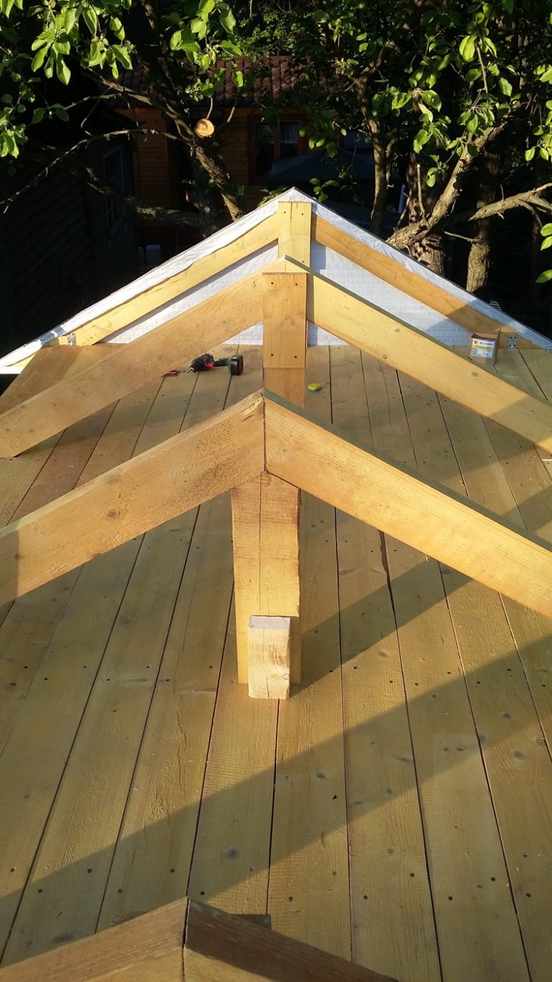 Готовим крышу, кладем утеплитель, зашиваем досками. С погодой везёт.