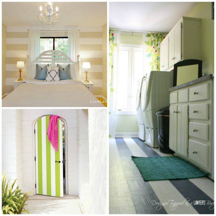 Чтобы освежить интерьер не обязательно менять покрытие пола или стен, достаточно просто декорировать устаревшие покрытия цветными широкими полосками.