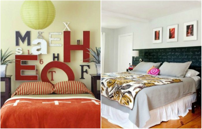 Грифельная доска в изголовье кровати — отличный вариант декора молодежной спальни.
