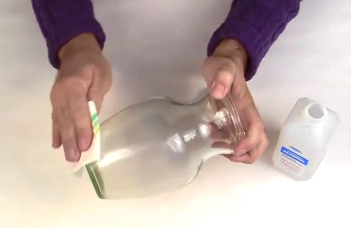 Протрите всю вазу медицинским спиртом и закрепите ее на клейкой ленте в центре диска.