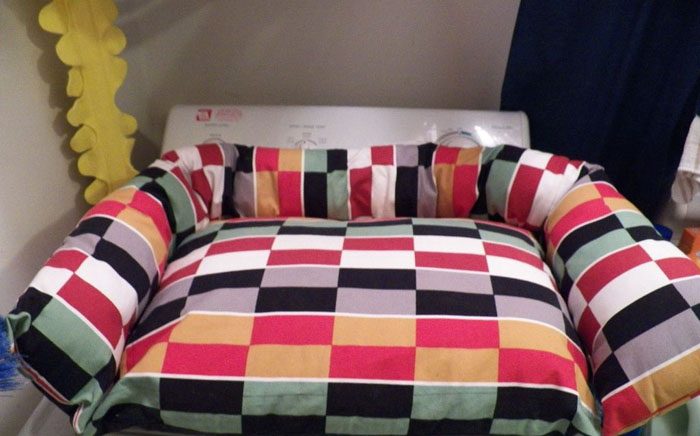 Можно подшить изнутри к верхней стороне подушки многоразовую пеленку (если с вашей собачкой иногда случается конфуз).
