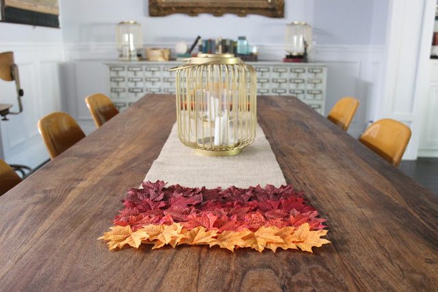 Сезонный декор: скатерть-дорожка из мешковины и осенних листьев
