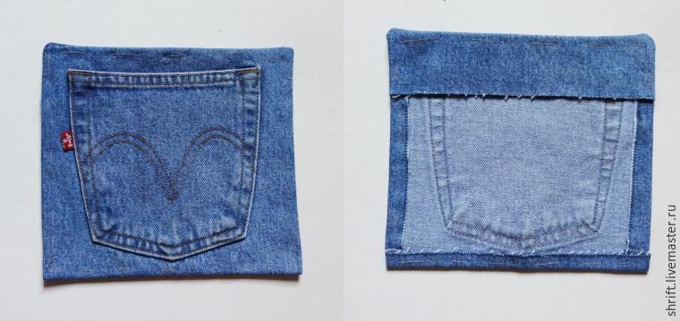 Из заднего кармана джинсов сошьем накладной карман, который будет располагаться на задней стороне сумки.