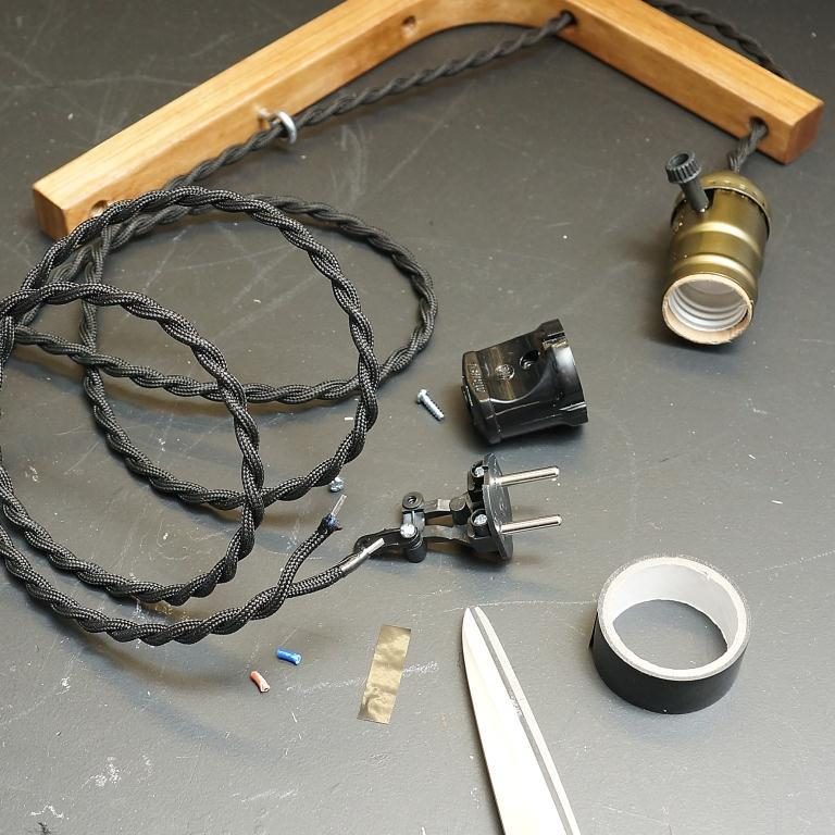 Инструменты для изготовления лампы: дрельсверла по дереву (3, 8 мм)отверткаплоскогубцыканцелярский ножлинейкакарандашкисть.
