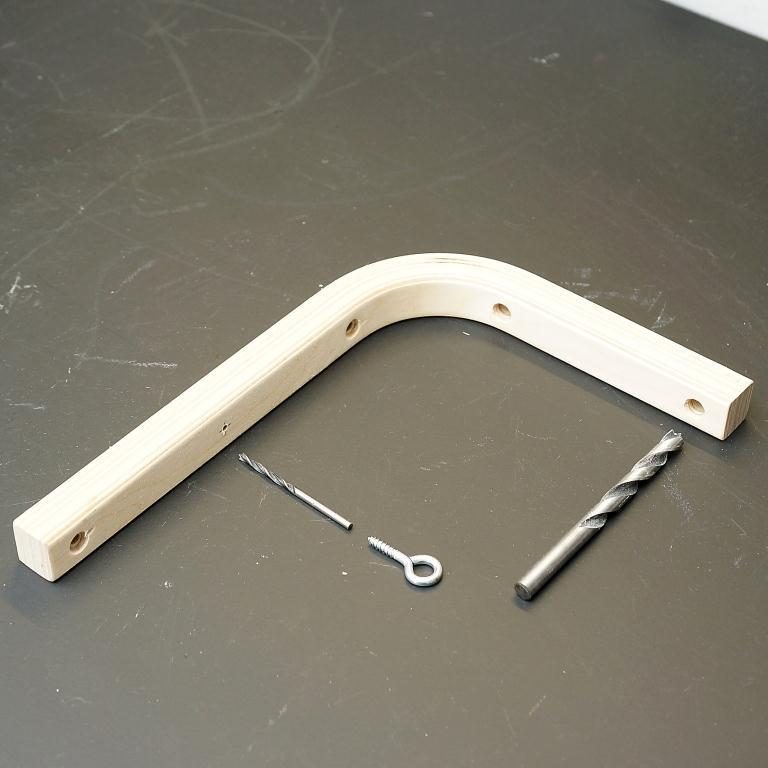 Просверливаем отверстие для кольца сверлом Д-3 мм. В короткой части консоли уже имеющиеся отверстия расширяем сверлом Д-8мм (через эти отверстия будет проходить провод).