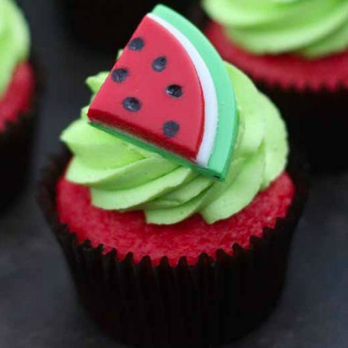 Альтернатива огромному торту — маленький капкейк, украшенный долькой арбуза.
