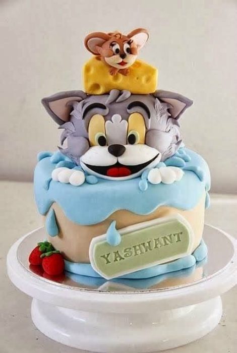 Яркий трехъярусный торт «Том и Джери».