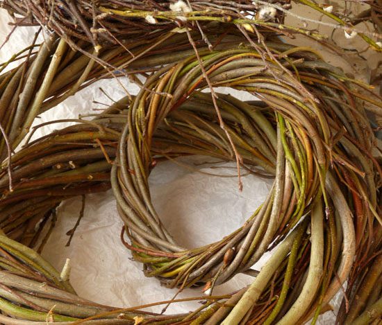 Первый и главный шаг для создания красивого венка — основа. Сейчас она продаётся во всех строительных гипермаркетах, цветочных магазинах или лавочках с мелочами для прикладного искусства. Обычно такая основа сделана из пенопласта, проволоки или картона. Но можно смастерить её и своими руками. Проще всего связать подходящие ивовые ветки тонкой проволокой для флористов. Для надёжности и красоты самодельную основу покрывают лаком, серебрянкой или акриловой краской в основных осенних тонах: терракотовом, жёлтом, коричневом или золотом.