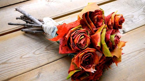 Хотите поразить гостей и занять домочадцев? Попробуйте сделать яркий розовый букет из опавших кленовых листьев.