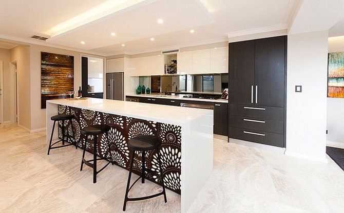 10. Ажурные обои в необычном месте оживят атмосферу всей кухни.