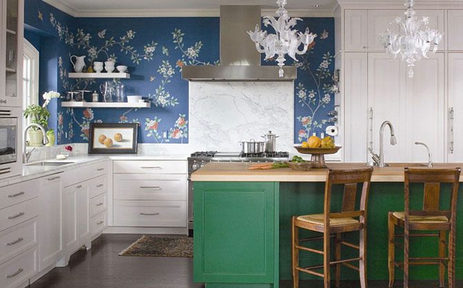 2. Немного иная ситуация обстоит с кухнями. Так как именно здесь обои способны произвести невероятный эффект! Их универсальность и легкость в работе с ними могут стать прекрасной альтернативой для тех, кто хочет уйти от обыденности и проявить оригинальность.