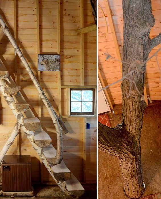 Деревянная конструкция на дереве выглядит очень впечатляюще.
