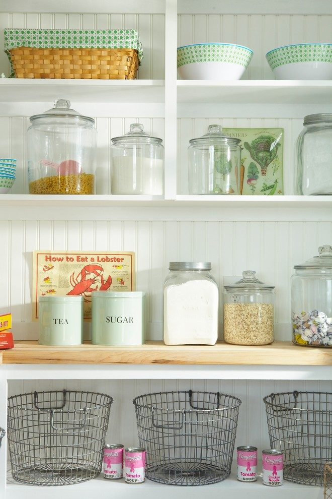 Макароны, крупы, соль, сахар, чай и кофе очень удобно хранить в банках. Выделите для них отдельный шкафчик и расставьте так, как вам удобно. Чтобы не заглядывать в каждую банку в поисках нужного сорта макарон, рекомендуем подписать все ёмкости.