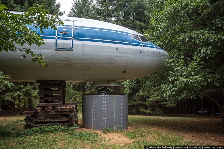 Так он решил переделать отлетавший своё Боинг-727 в жилой дом. Уже после появилась и теория, почему жизнь в самолёте лучше, скажем, чем в деревянном доме: дерево недолговечно, подвержено нападению термитов: дерево деформируется от обильных дождей, а они в Орегоне не редкость. И, в конце-концов, такой дом очень легко загорается.