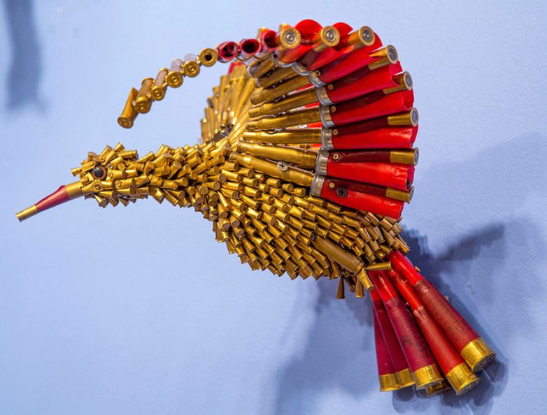 Колумбийский художник Федерико Урибе, живущий в Майами, создал серию скульптур «Мы за мир»: серия состоит из статуй и барельефов, состоящих из… пуль.