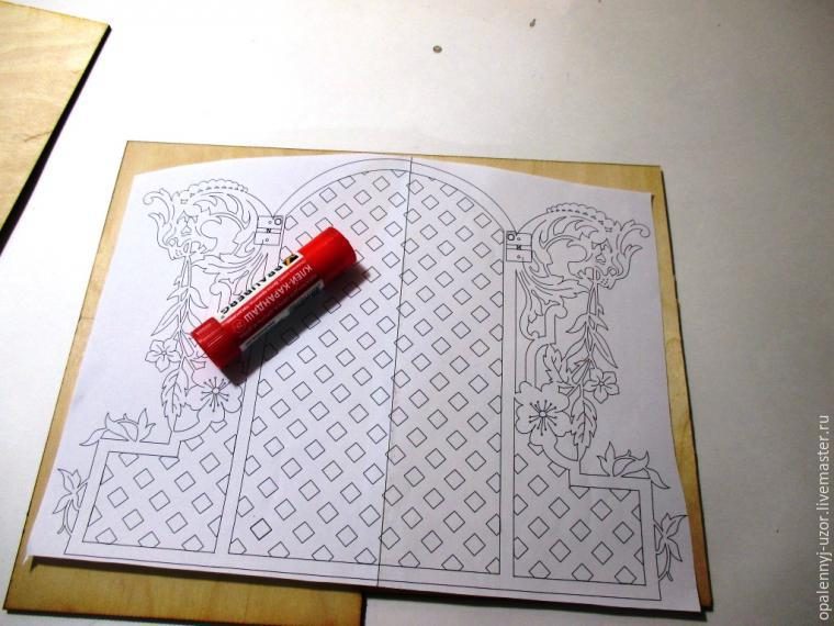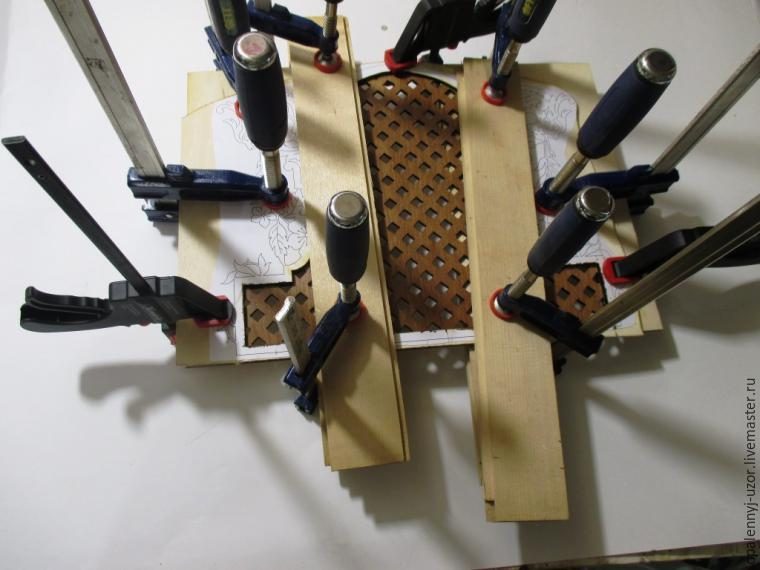 После такой же чертеж наклеил на другой кусок 4 мм фанеры и вырезал внутреннюю решетку.