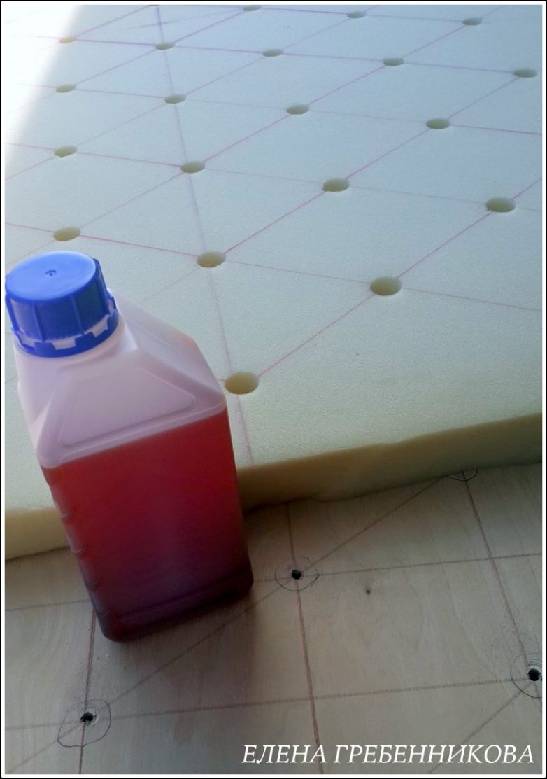 Проверяем, как точно совпадают отверстия в поролоне и фанере.