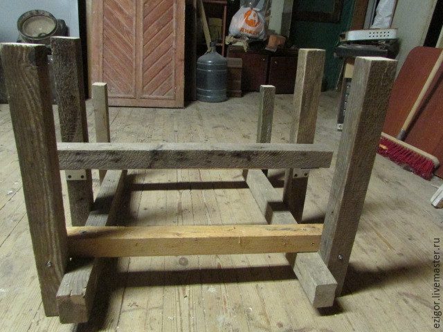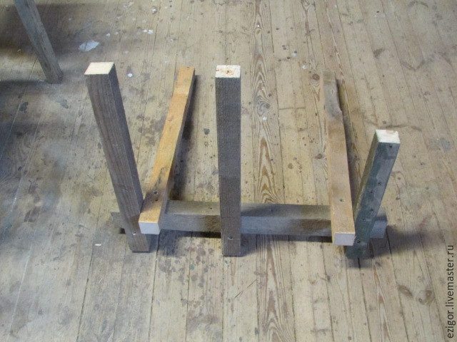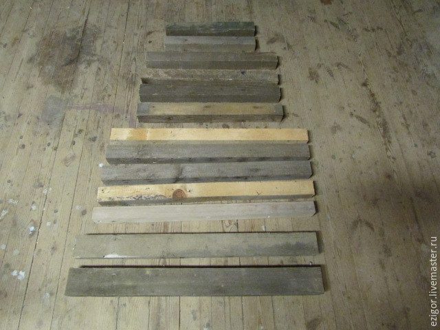 2. Покопавшись в дровяных отходах, насобирал обрезков от бруска 5х5 см. Очистив от саморезов и гвоздей, начал нарезать по размерам.