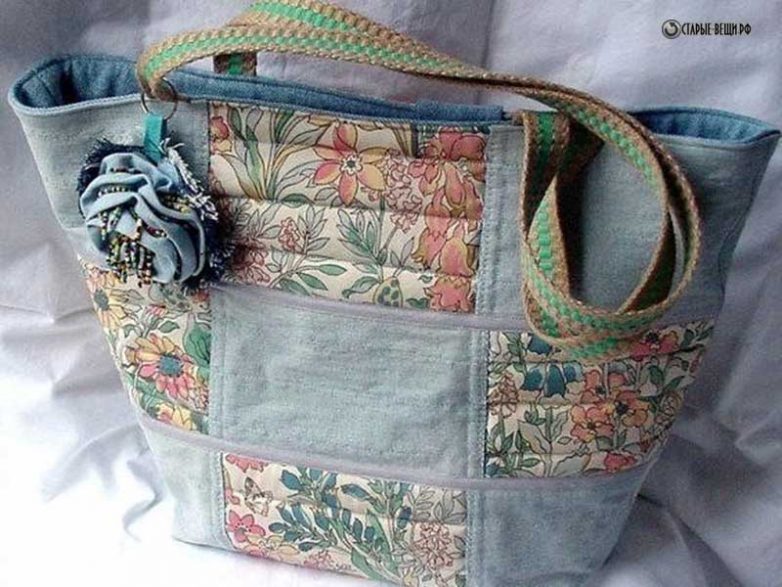 Создайте себе новую модную эксклюзивную сумочку из джинсов небольшого размера. Особенно элегантно смотрятся сумочки из старой джинсовой одежды в форме трапеции с различными вставками, бантиками, цветами, придающими нарядной сумочке декоративности.