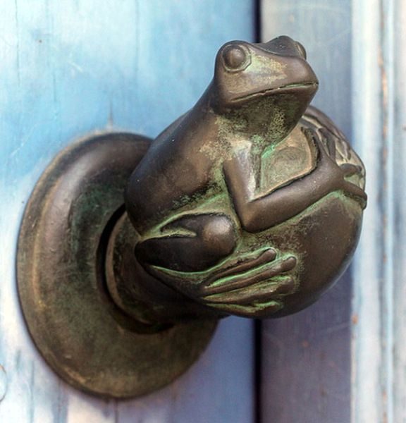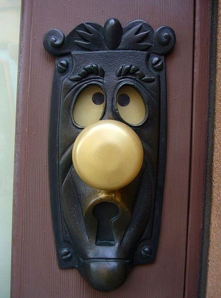 Традиция придавать дверным ручкам форму каких-то животных, химер и легендарных существ происходит еще со времен Средневековья. Сейчас также можно встретить кованые необычные дверные ручки, стилизованные под готику. Но очень оригинально и нестандартно выглядят дверные ручки из обыденных предметов, например, из ложек или велосипедных деталей.
